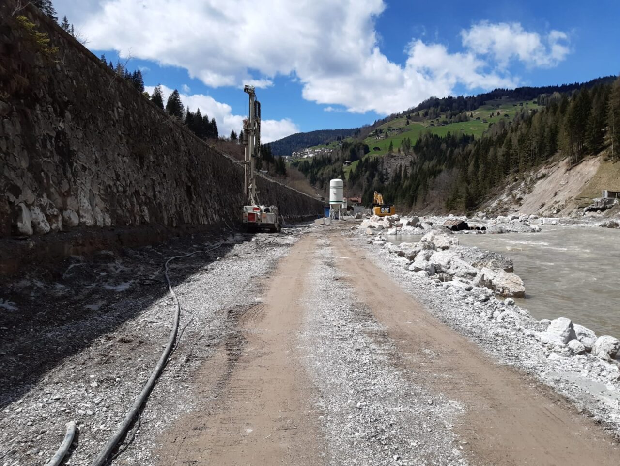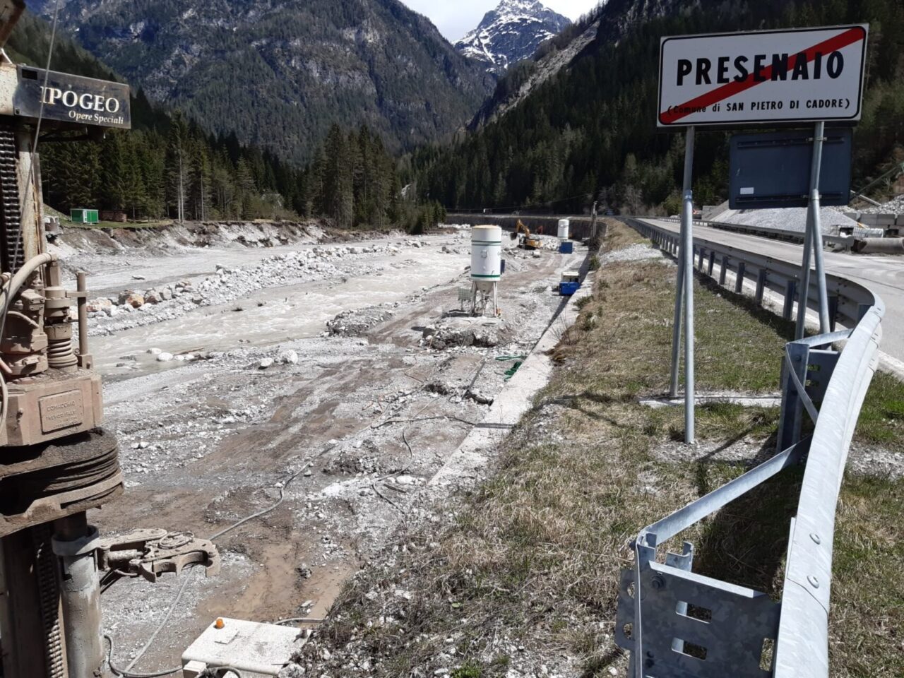 “Appena più a valle sono entrati nel vivo anche gli interventi finalizzati alla ricostruzione e al potenziamento del muro d’argine in sinistra idrografica del Piave nel tratto compreso tra la confluenza del torrente Cordevole di Visdende e il ponte di Presenaio. Si tratta di un importante intervento, appaltato lo scorso autunno e per il quale abbiamo impegnato ben 3.850.000 euro, che si estende per un tratto di lunghezza di circa 600 metri parallelamente alla Strada Regionale 355 e che prevede il consolidamento al piede del muro arginale mediante un dado di fondazione di altezza pari a 130 centimetri fondato su micropali, il consolidamento del muro stesso mediante l’inserimento di tiranti autoperforanti e la realizzazione di una controparete esterna in spritz beton armato con doppia rete elettrosaldata”.