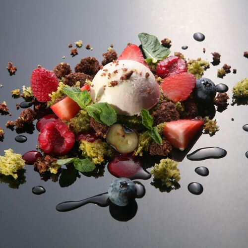 Lo chef-patron Riccardo Gaspari attinge a piene mani dalle proprie produzioni e dal territorio; prelibatezze dove il ricordo e le tradizioni montane vengono rinfrescati con tocchi moderni, come per la parte finale e dolce del pasto (squisiti dessert realizzati senza l’aggiunta di ulteriori zuccheri).