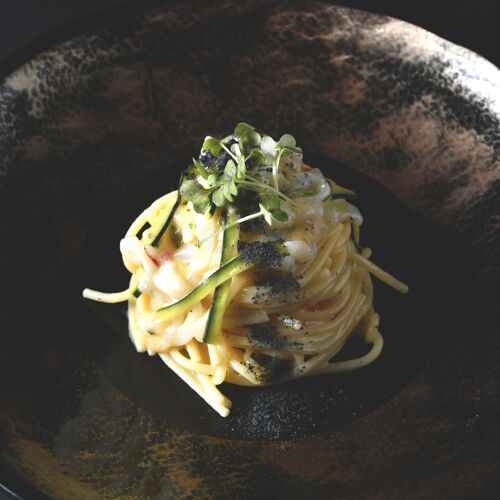 Le materie prime provengono principalmente dal territorio montano, ma non manca il pescato freschissimo che arriva ogni giorno dai mercati di Venezia e Chioggia: il risultato è una cucina saporita, generosa e sempre equilibrata. Grande attenzione viene riservata anche al mondo vegetale, con un menu interamente dedicato ai piatti vegetariani.