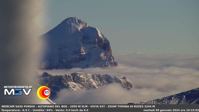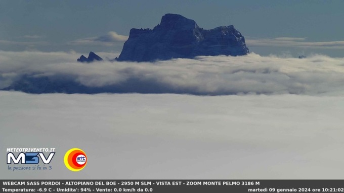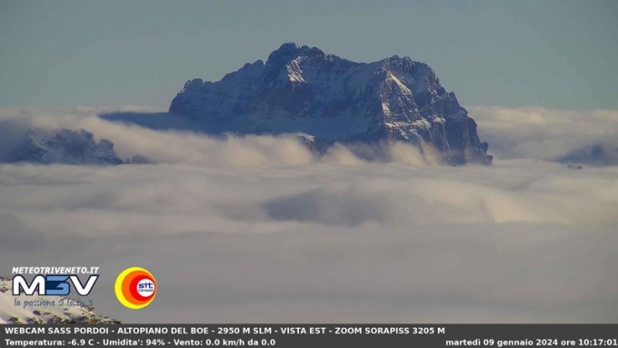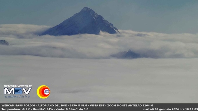 Grazie alla webcam di ODV – Meteo Triveneto M3V, posta ai 2950 metri del Sass Pordoi “La Terrazza delle Dolomiti”, in collaborazione con SITC, è possibile vedere solo le vette dei monoliti dolomitici bellunesi come la Tofana di Rozes, Antelao, Sorapiss, Pelmo e Civetta, gli over 3.000 dell’Agordino-Boite.
