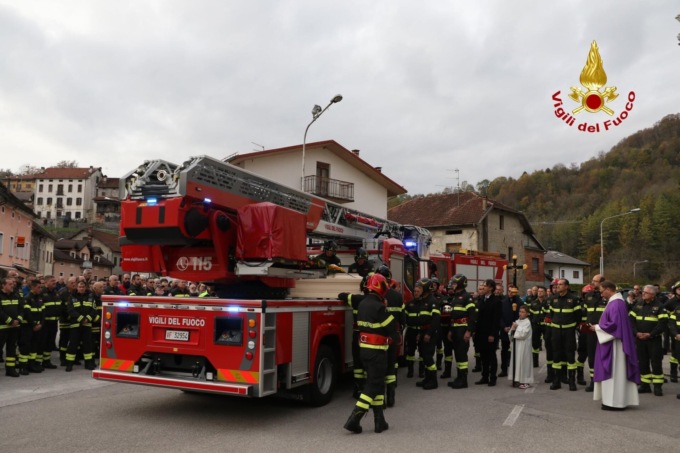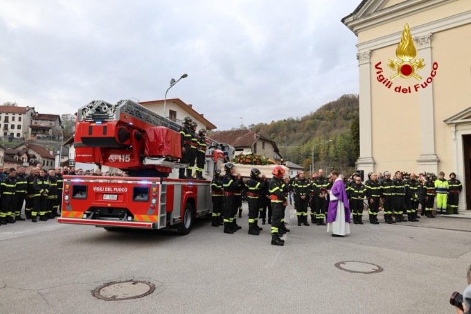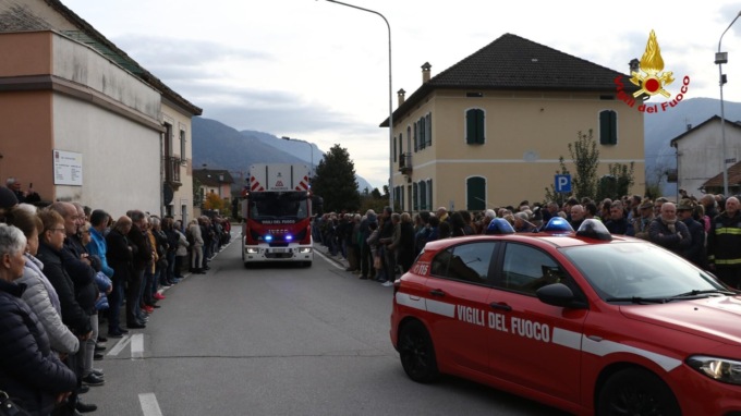 La bara è arrivata alla Chiesa di Puos a bordo dell’autoscala dei vigili del fuoco, dove erano presenti ad attenderlo un migliaio di persone tra cui moltissimi colleghi e amici, che si sono stretti intorno alla famiglia di Walter.