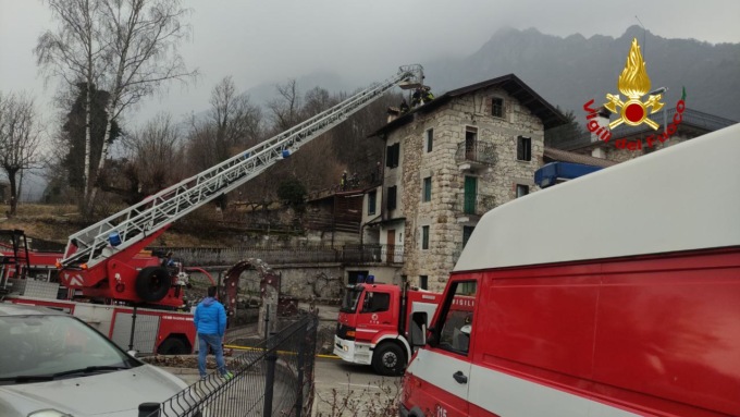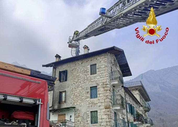 Le fiamme hanno coinvolto una parte del tetto e dell’abitazione sottostante. Ancora in corso le operazioni di bonifica.