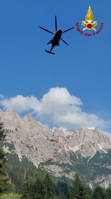 La mucca, dopo essere stata imbragata, è stata issata con il gancio baricentrico dell’elicottero e trasportata vicino alla malga.  Le operazioni di soccorso dei vigili del fuoco sono terminate poco prima delle 20.