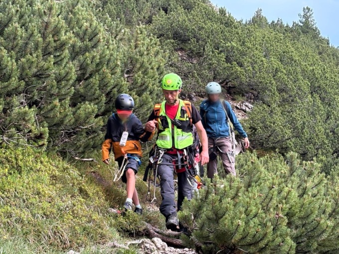 I soccorritori hanno dato le loro giacche ai bambini, assicurato genitori e figli e provveduto a calarli per circa 50 metri, accompagnandoli infine alla loro auto parcheggiata al Passo di Valparola.