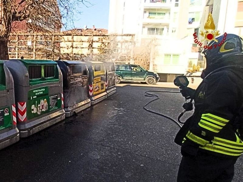 Cassonetto in fiamme in piazzale Marconi, l’intervento dei vigili del fuoco