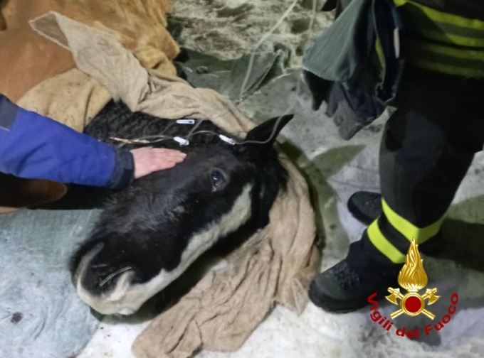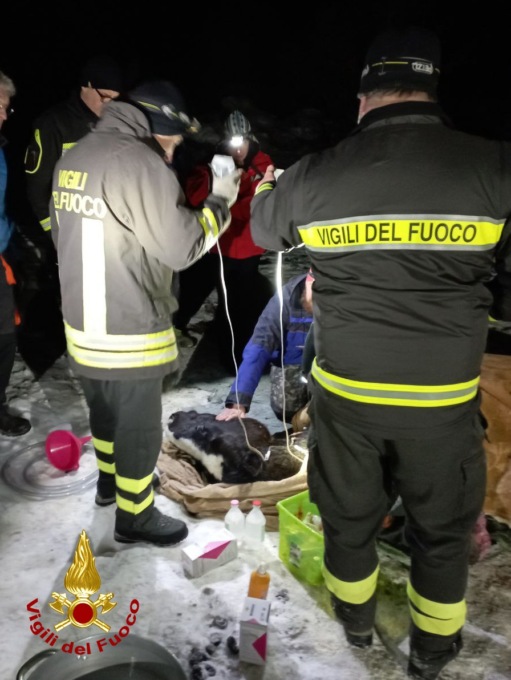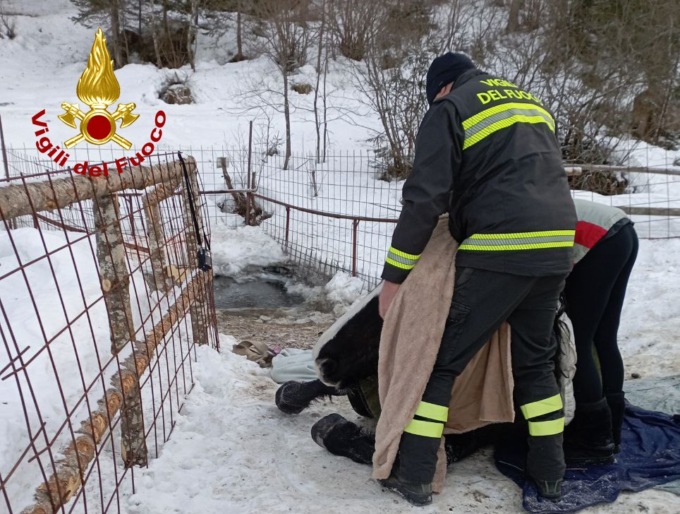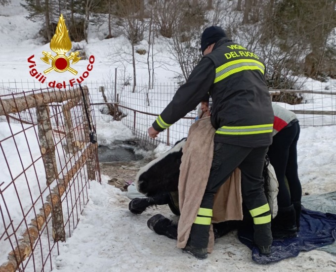 È accaduto oggi, martedì 7 febbraio, a Canale d'Agordo. I pompieri hanno riscaldato l'animale fino all'arrivo del veterinario