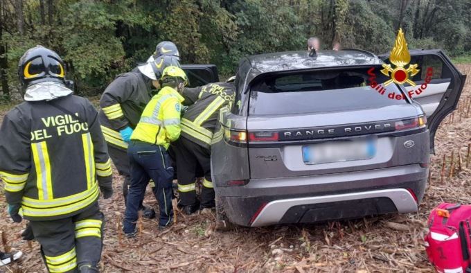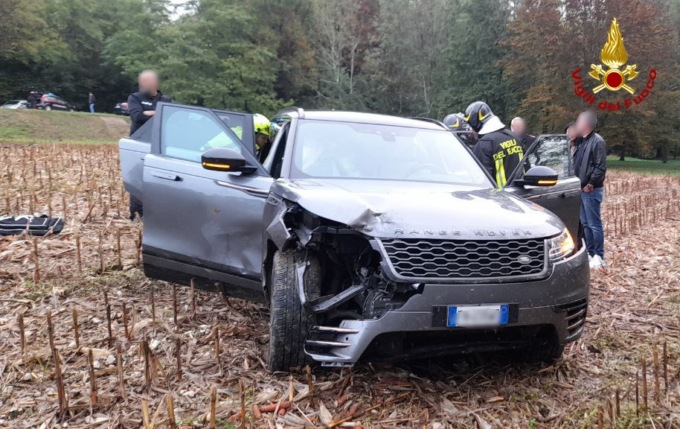 Da una prima ricostruzione, il conducente stava percorrendo la provinciale quando improvvisamente il cervo ha attraversato la strada, impattando con la Land Rover Velar poi finita nel campo agricolo.