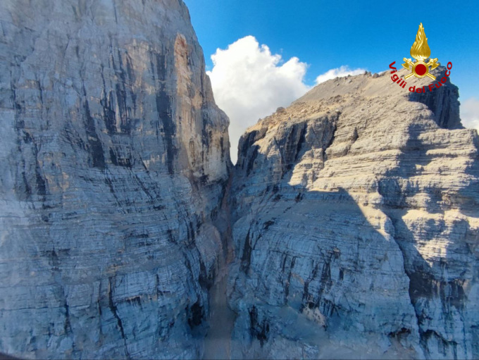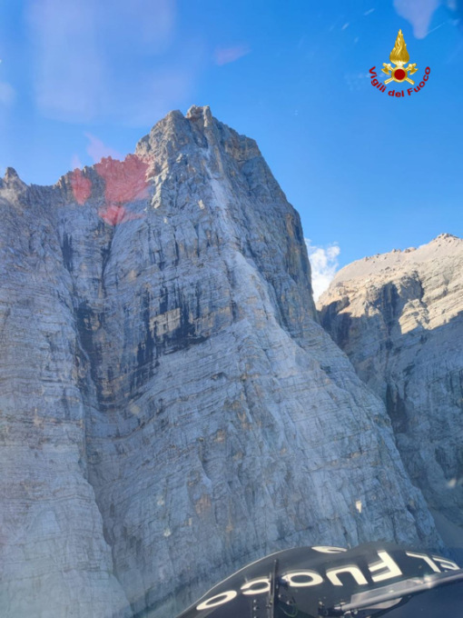 Dalle prime valutazioni il distacco è avvenuto dallo stesso punto in cui, il 31 agosto del 2011, si originò il grande crollo che costò la vita ad Alberto Bonafede e Aldo Giustina, i due soccorritori impegnati in un intervento sulla via Simon Rossi. Il materiale roccioso, che ha sollevato una grande nuvola di polvere, è arrivato sul ghiaione sottostante senza interessare il sentiero e senza coinvolgere persone di passaggio, mentre continuano le scariche.