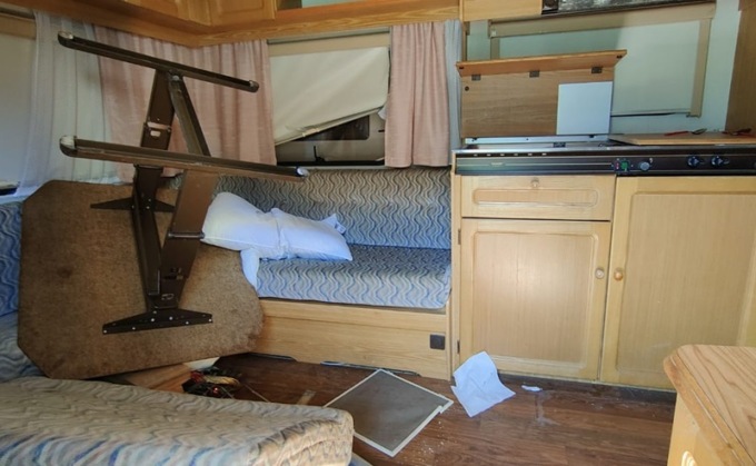 “Come se fosse esplosa una bomba…” ha raccontato il presidente. Auto aperta, roulotte presa a sassate, carte sparpagliate a terra.