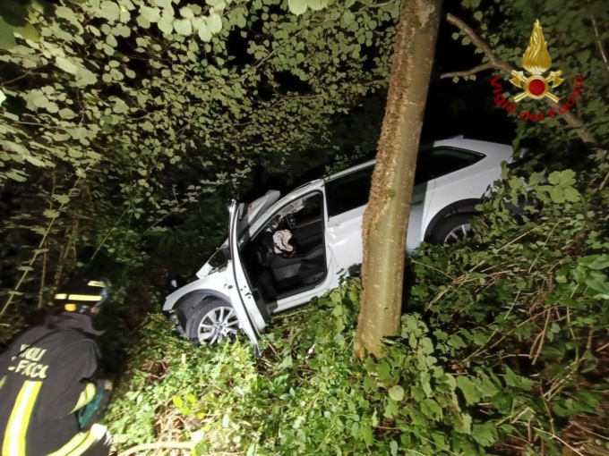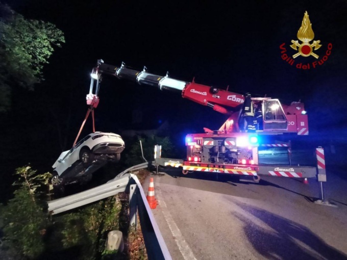 Un’auto, per cause ancora al vaglio dei Carabinieri, è uscita di strada poco prima delle 21, divelgendo il guardrail e finendo per alcuni metri sotto il livello della carreggiata.