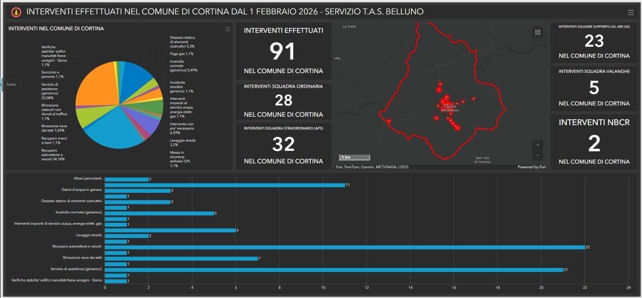 Durante il periodo dei Giochi Olimpici Invernali 2026 i Vigili del fuoco sono stati impegnati in modo costante sul territorio di Cortina d’Ampezzo, dove dal 4 al 22 febbraio sono stati effettuati complessivamente 91 interventi.