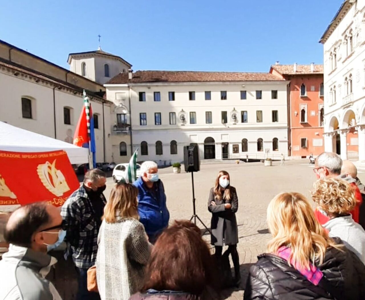 battaglia. Roberto Padrin, presidente della Provincia di Belluno, si è recato al presidio martedì 13 aprile 2021 e ha affermato:
