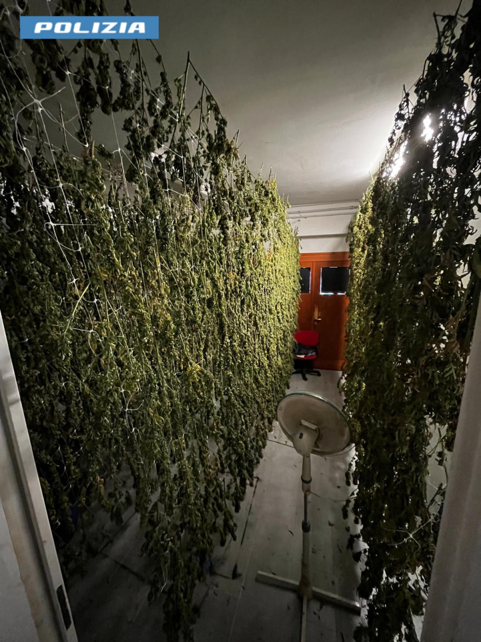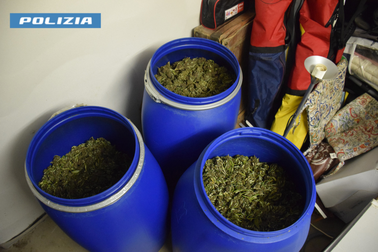 Durante il controllo, la Polizia ha trovato una piantagione di circa 2.000 metri quadrati con 360 piante di canapa sativa, alte quasi due metri. All’interno dei locali sono stati inoltre trovati 46 chili di infiorescenze in fase di essiccazione e materiale utilizzato per la lavorazione e separazione della sostanza.