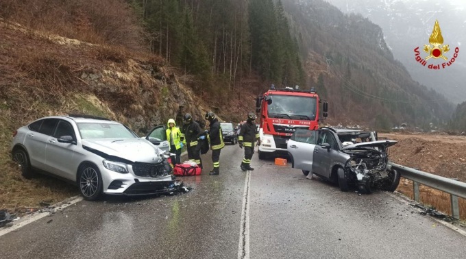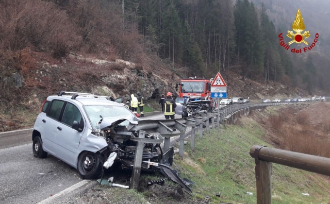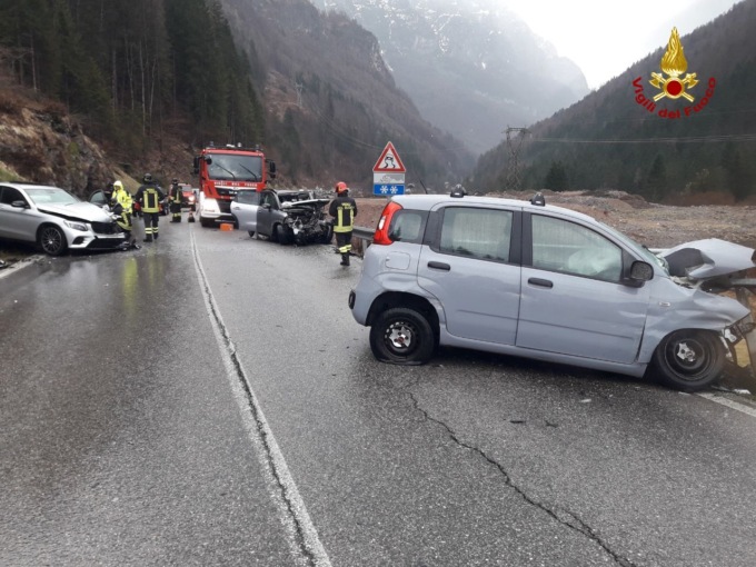 Alle 16:15 di oggi, sabato 23 marzo, i vigili del fuoco sono intervenuti lungo la strada regionale 346 in località Mas per un sinistro tra tre auto: sei persone ferite.