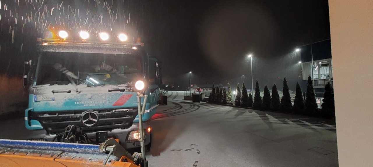 Fin dalle prime ore del mattino mezzi e personale di Veneto Strade sono operativi per garantire la percorribilità della rete, con attività di salatura e monitoraggio costante.
