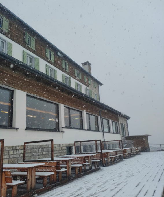 Aprav l’aveva previsto e così è stato. Precipitazioni diffuse, a tratti forti rovesci, e limite neve in graduale calo dai 2.800 metri fino ai 1.500 m o a tratti anche a quote inferiori specie durante i rovesci. E che dire delle temperature? Sembra esser piombati nell’autunno inoltrato che si appresta a diventare inverno. In Marmolada tormenta di neve come testimoniato da video e foto postati da Carlo Budel, gestore del rifugio Capanna Punta Penia, che ha realizzato il consueto pupazzo di neve.